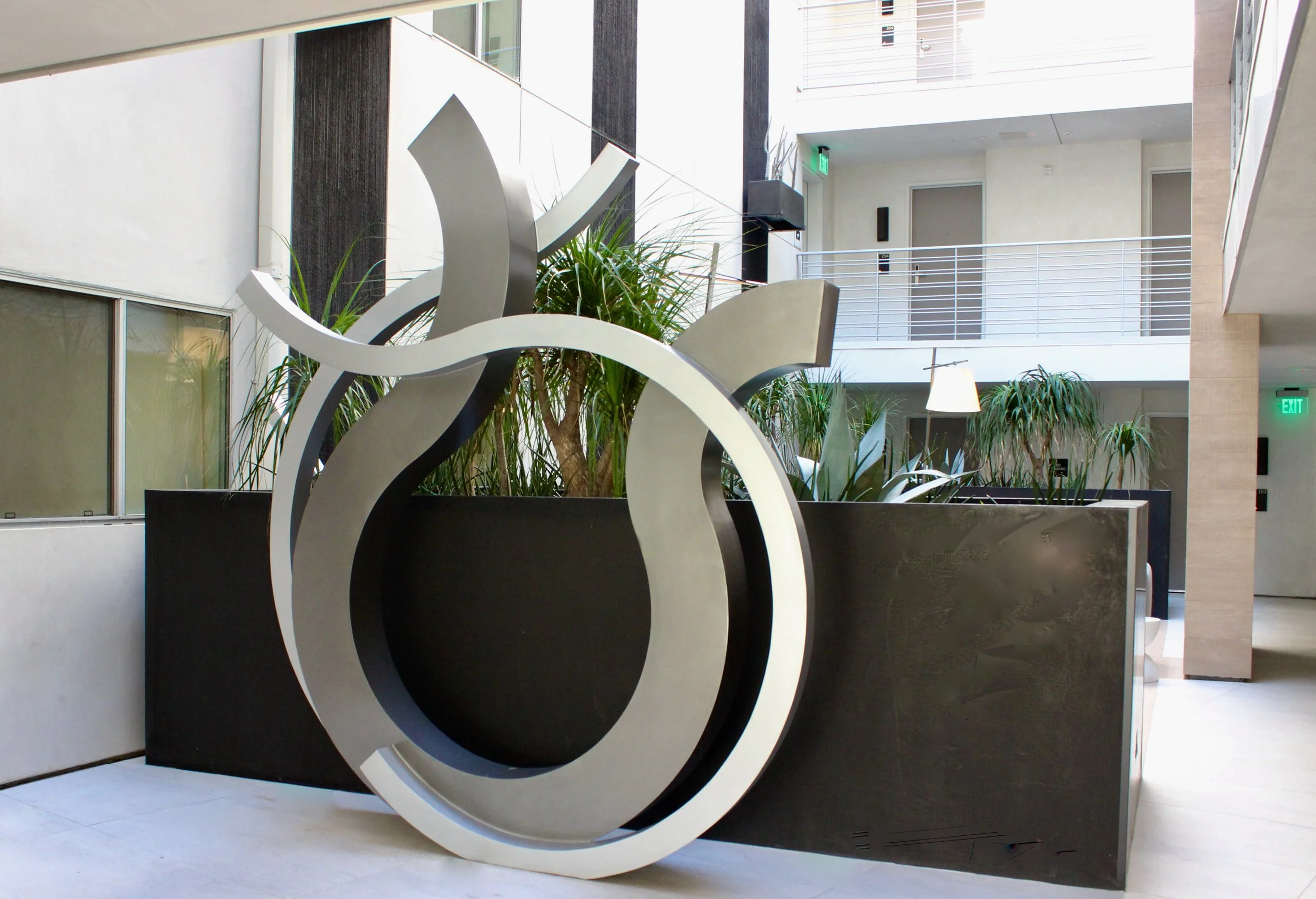 Commissioned Sculpture, oil enamel on steel, overall size is 8'6”high by 7'4" wide by 16” deep. for a Multi-Family Residence, Los Angeles, CA
