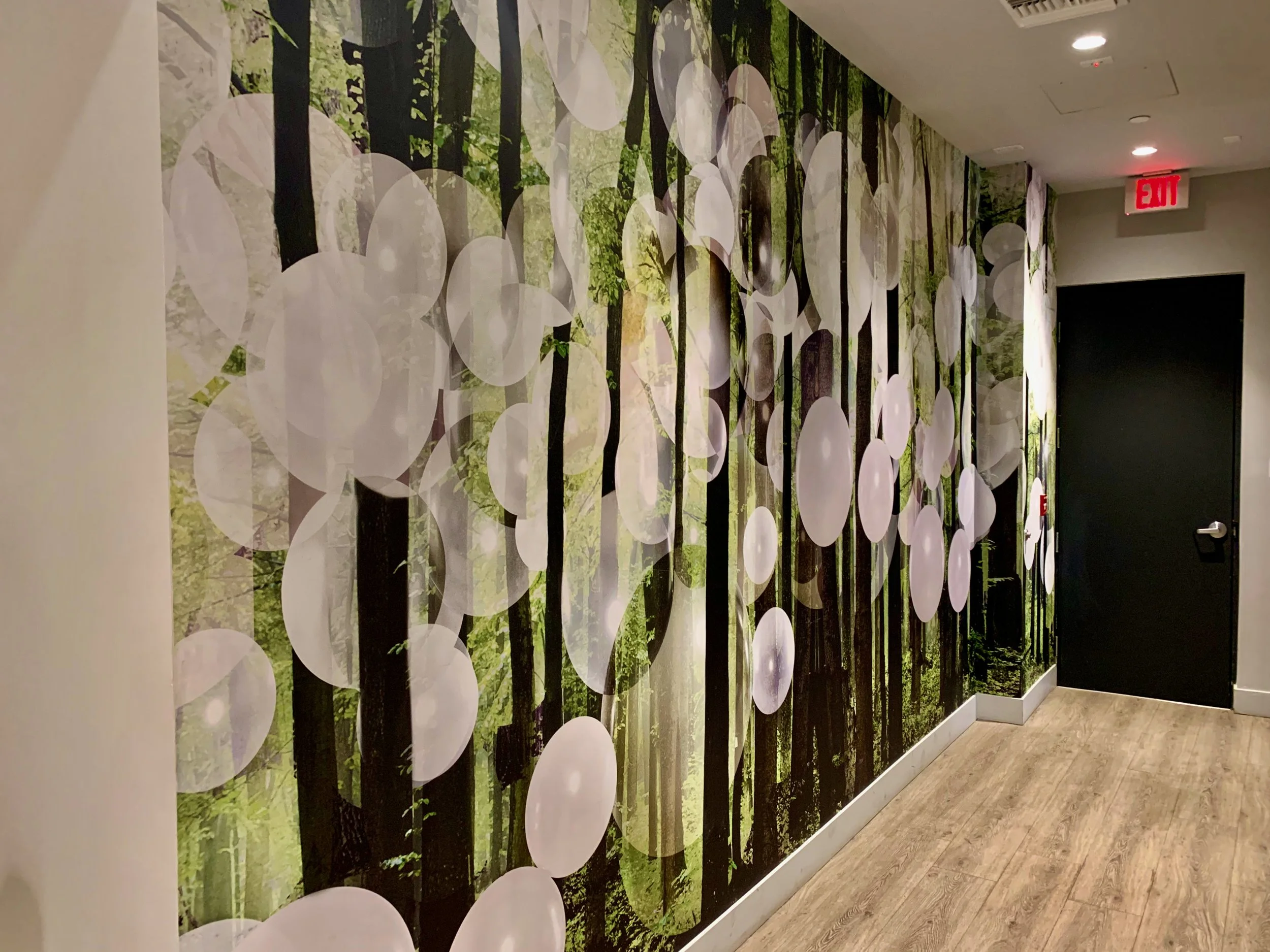 High resolution photography printed on wall covering for floor to ceiling high impact in Multi-Family Residential project, North Hollywood, CA.